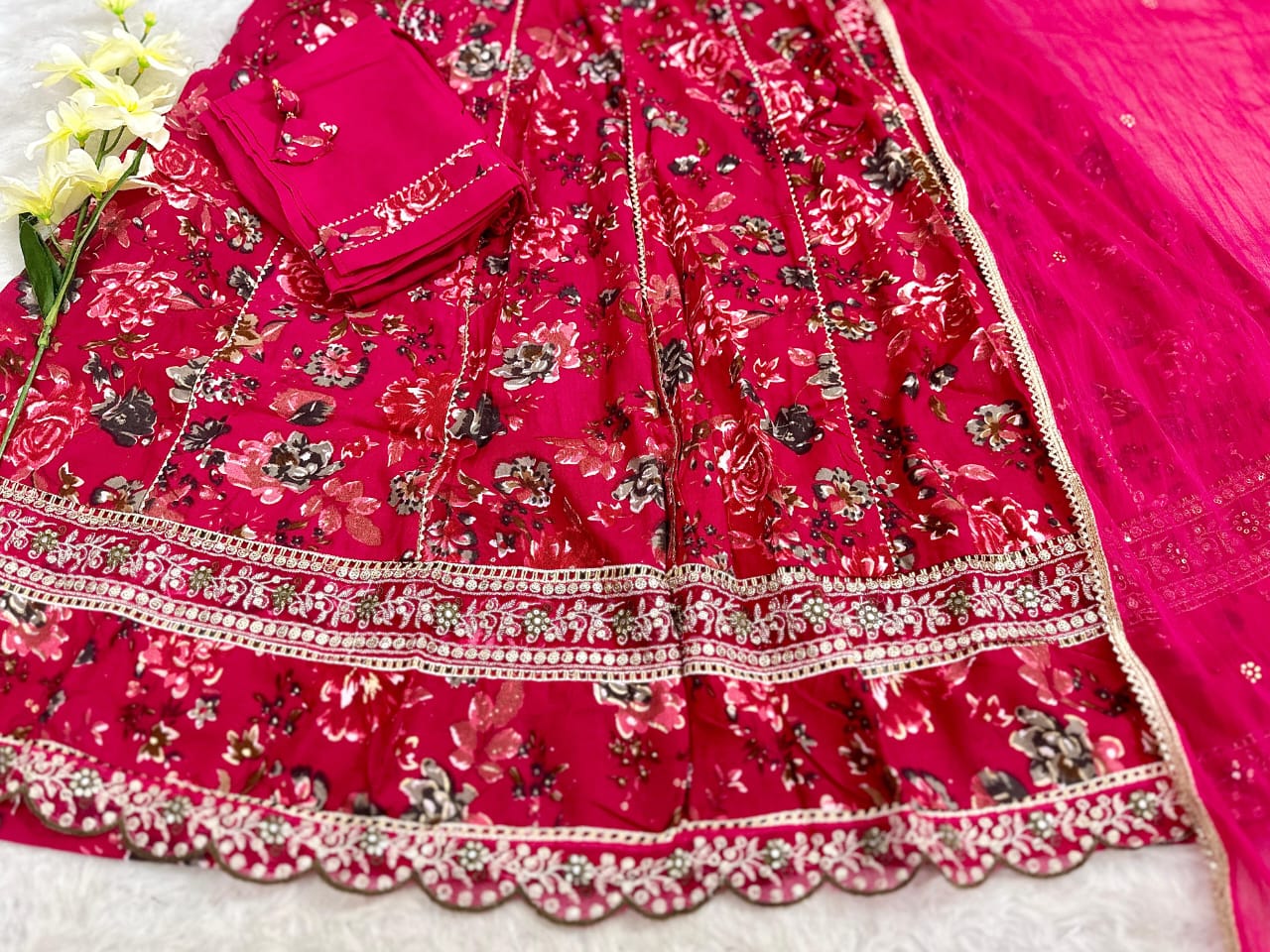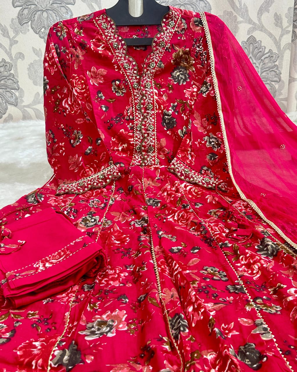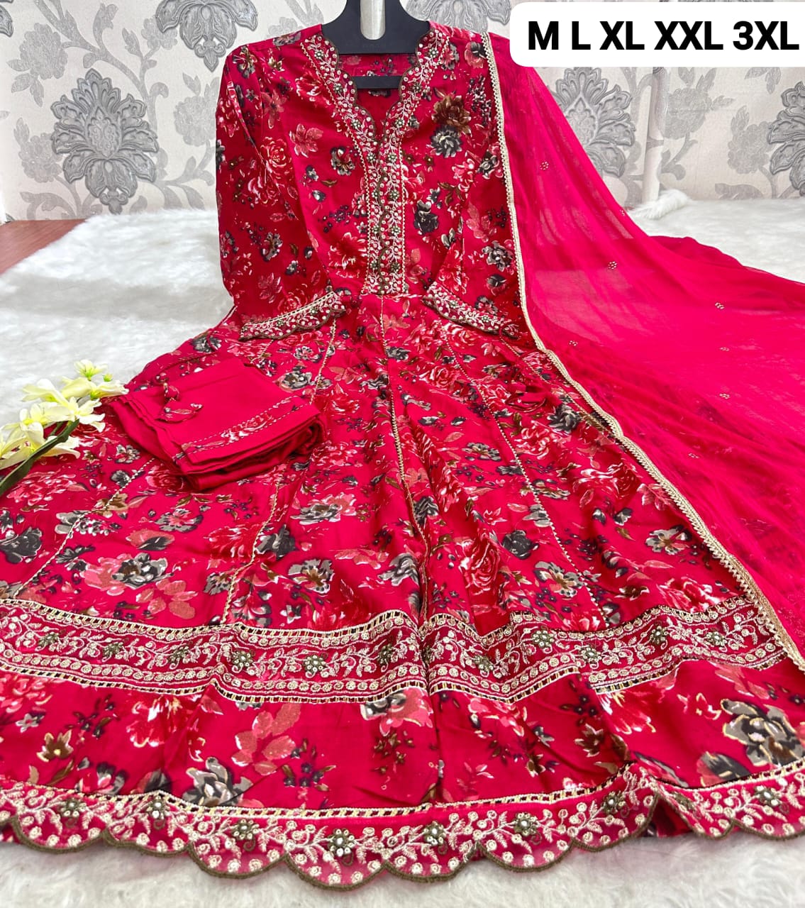 Beautiful ANARKALI KURTA With Heavy Reyon Embroidery Work On Yoke Along with Pant With Chiffon Duppata