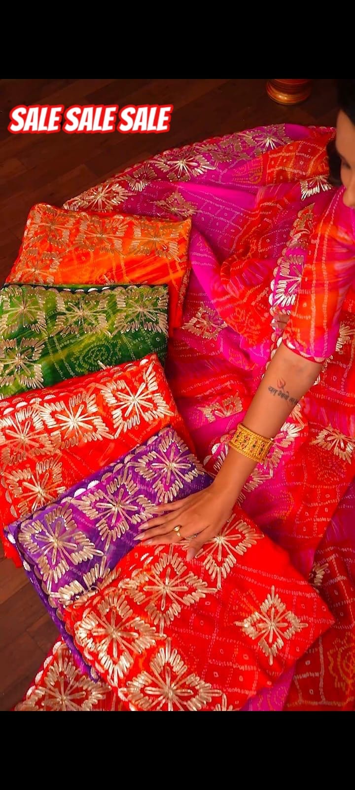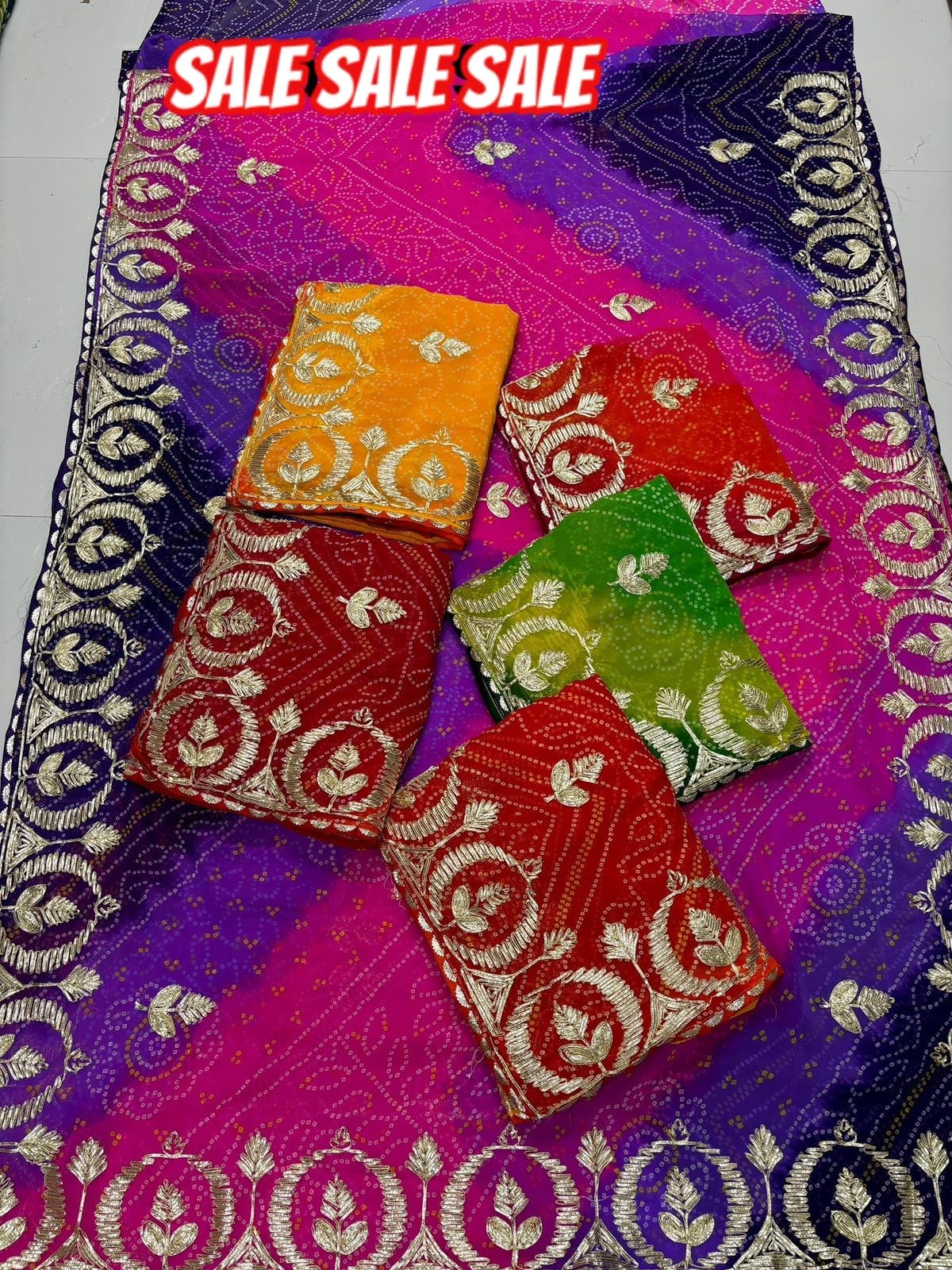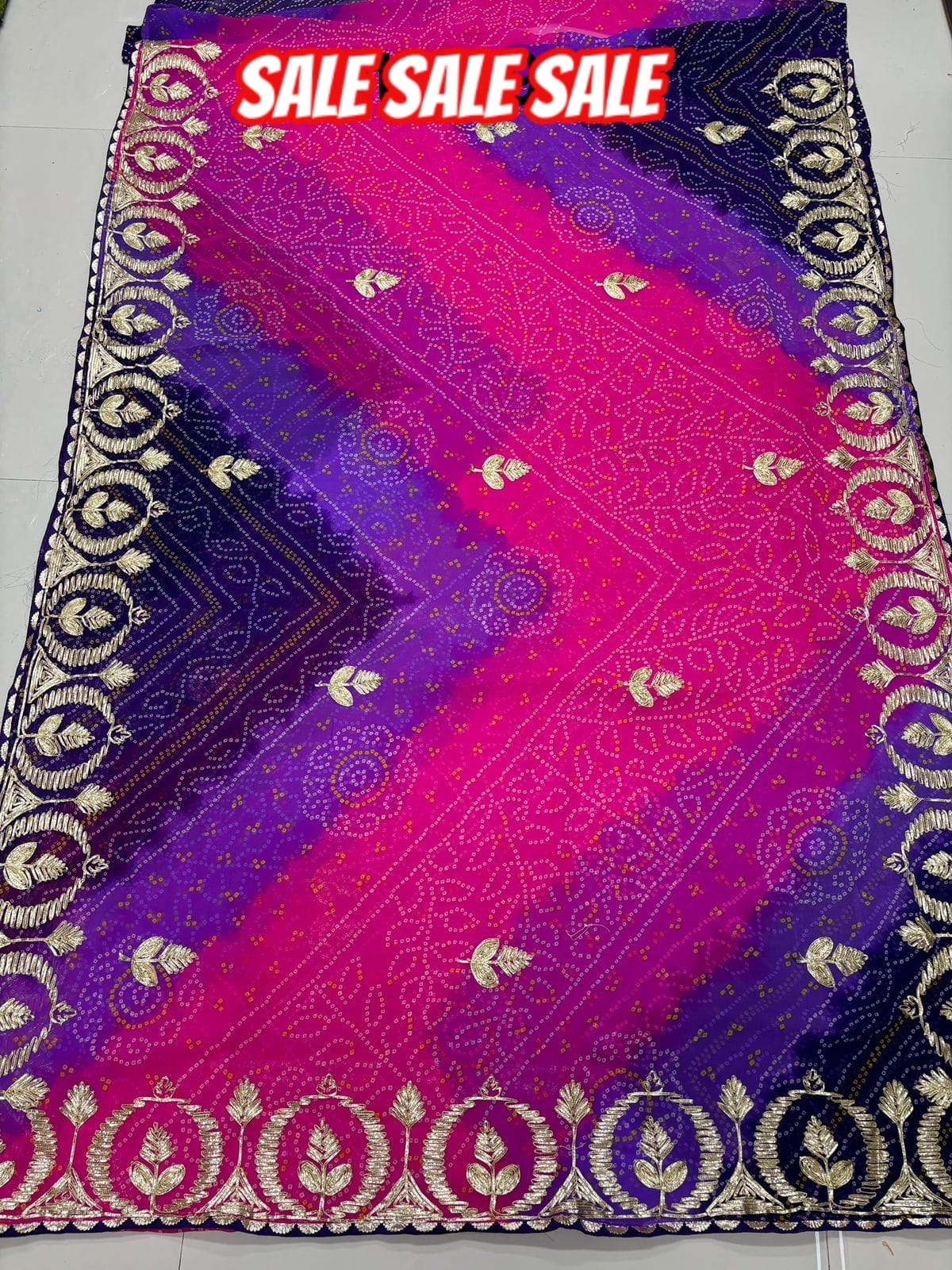 shaded Bandhani saree, traditional tie-dye print with gota pati work