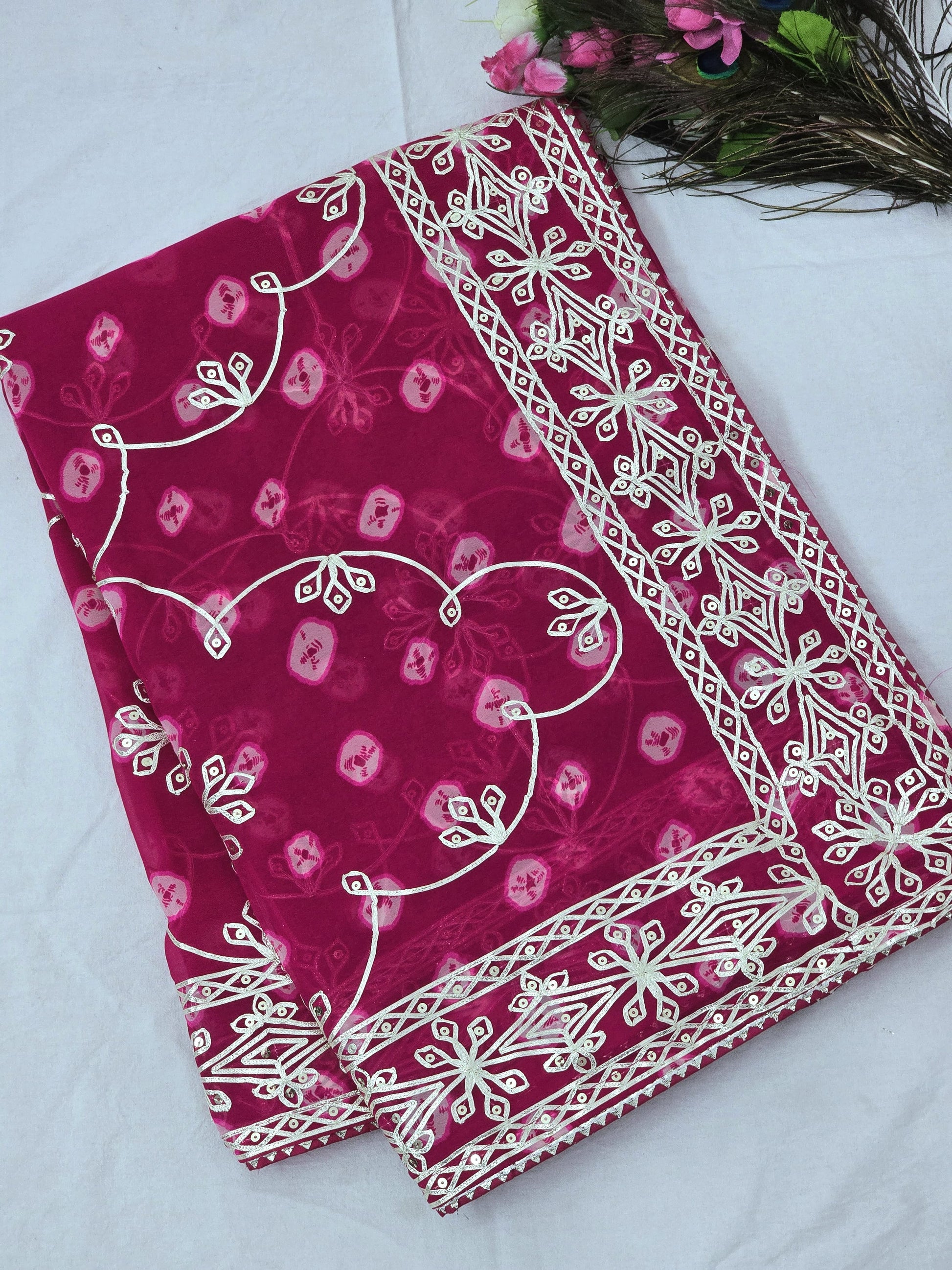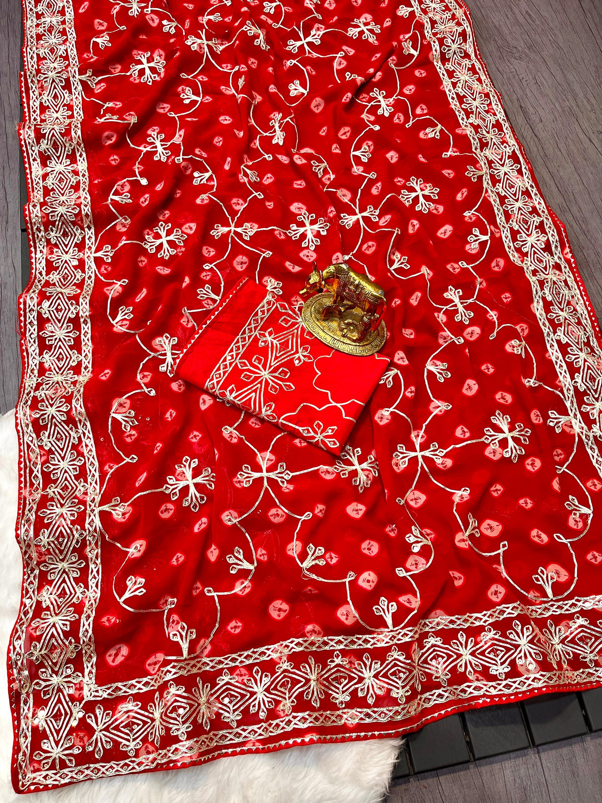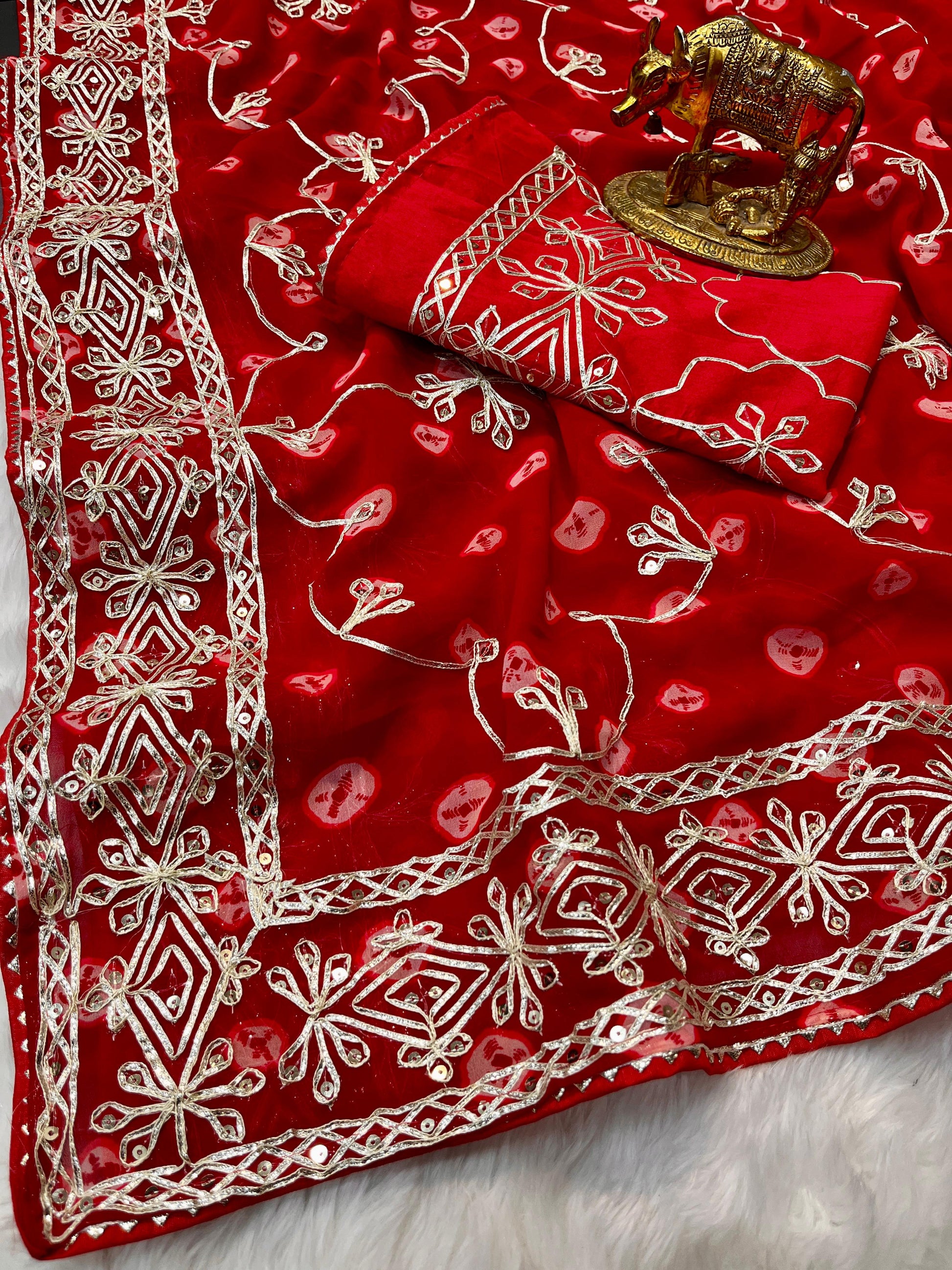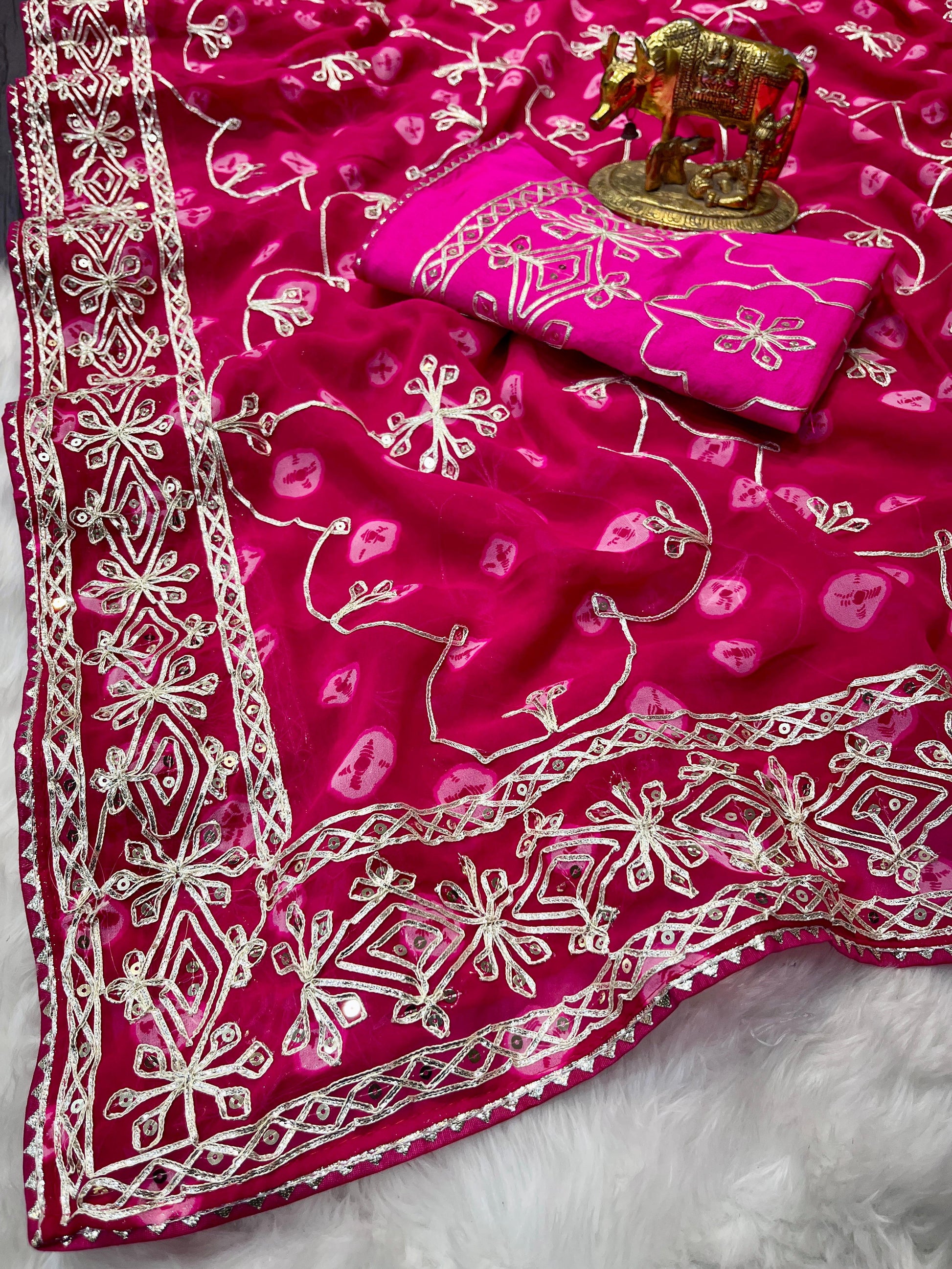 Presenting The *Pure CxC Georgette* Saree with Luxury *Bandhani Print* With *Trending Heavy Gota Pati Work* in C~Pallu Work & Border😊