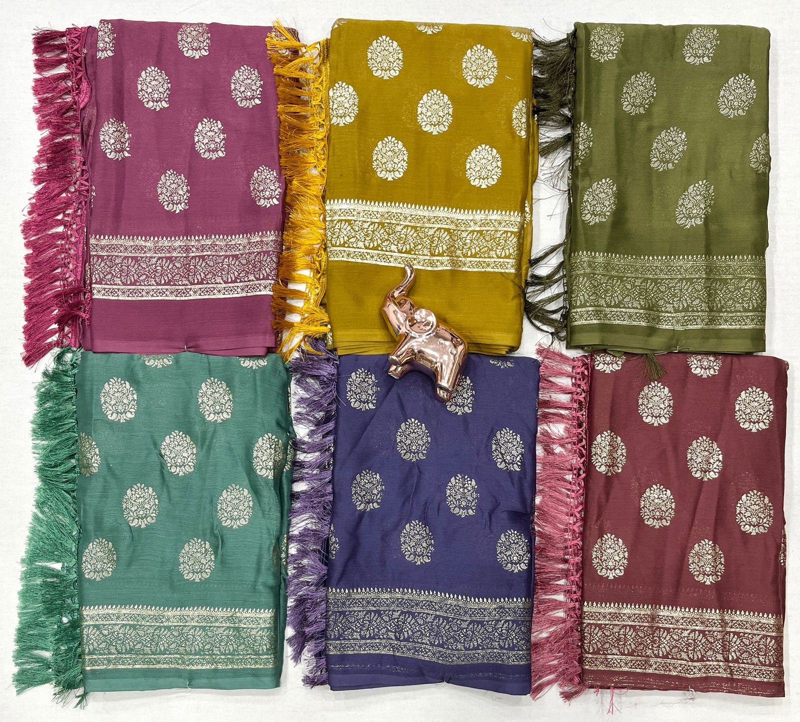 Presenting Chiffon With Original Ramanuj Mill Foil all over the Sarees …Beautiful Peding Color Combination