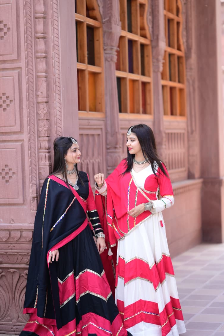 *Pattern*-contrast color zigzag pattern in Lehenga with different types of laces touch up.