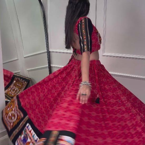 Lehenga Work : Printed And Gamthi work With Mirror work