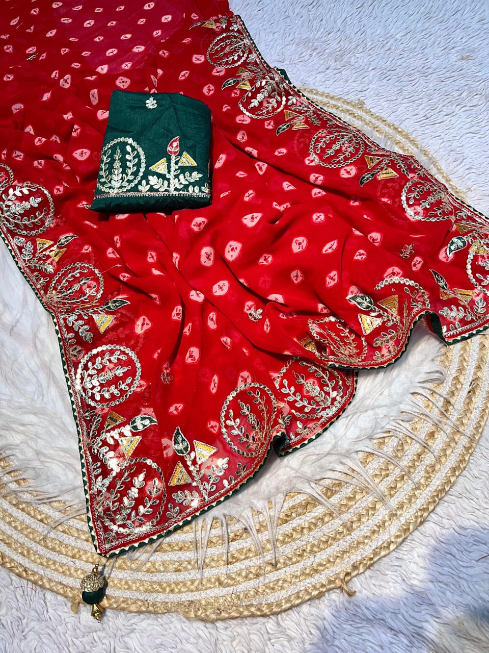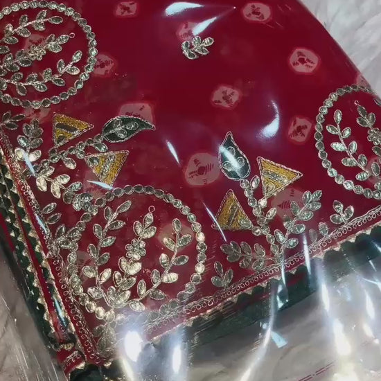 Fabric / work :- *soft c*c Georgette bandej c-pallu foil gotapatti multi work & butti in whole saree*