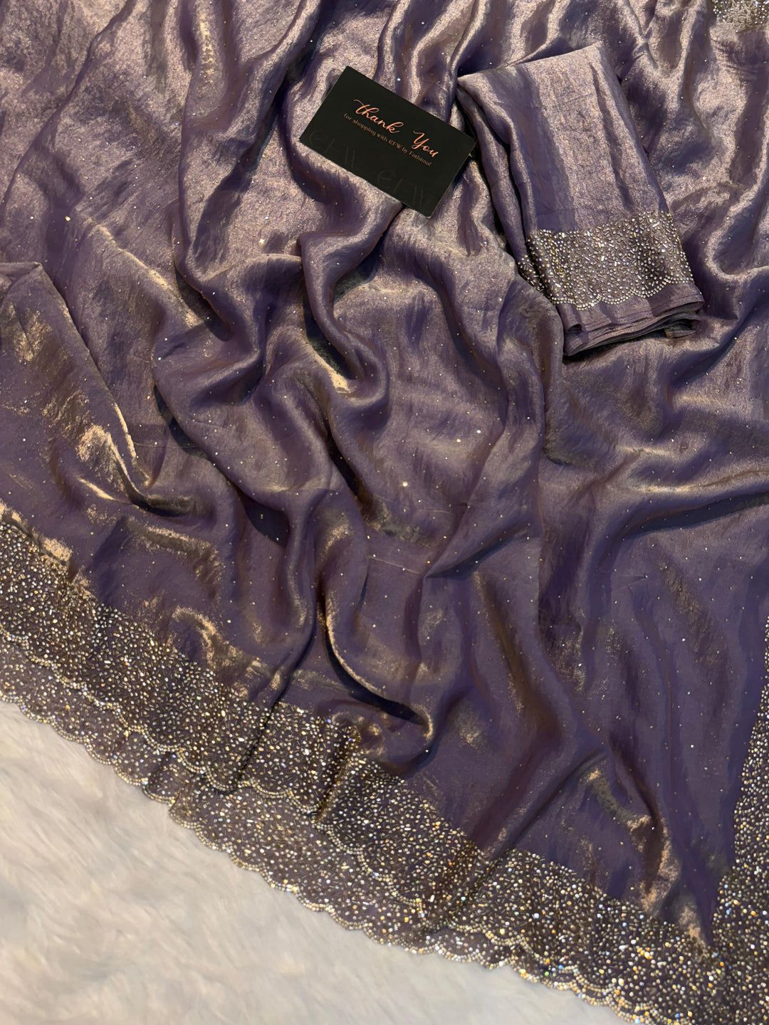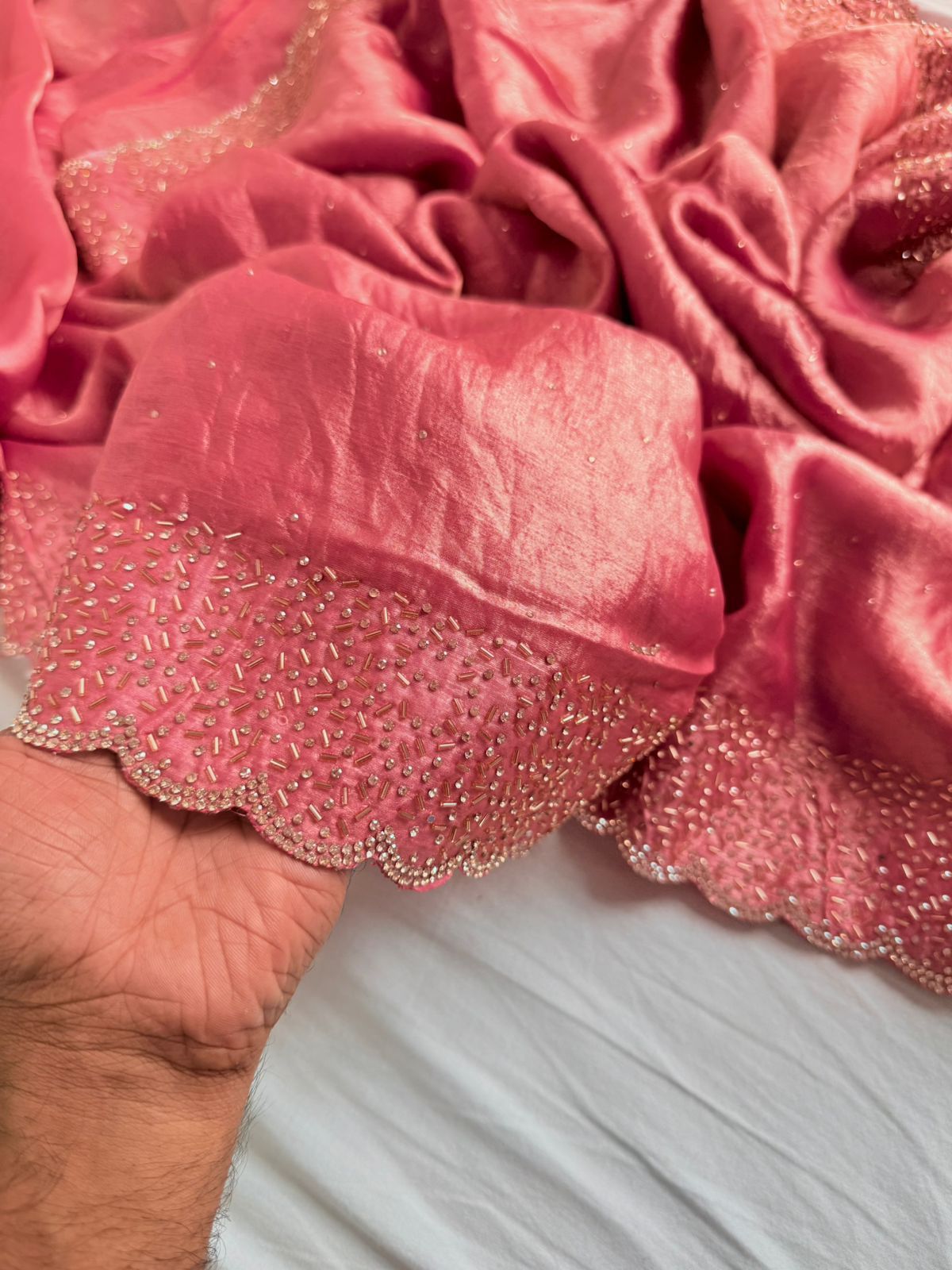 Space Sattin Soft Silk Saree With Jarkhan Work & Running Work Blouse