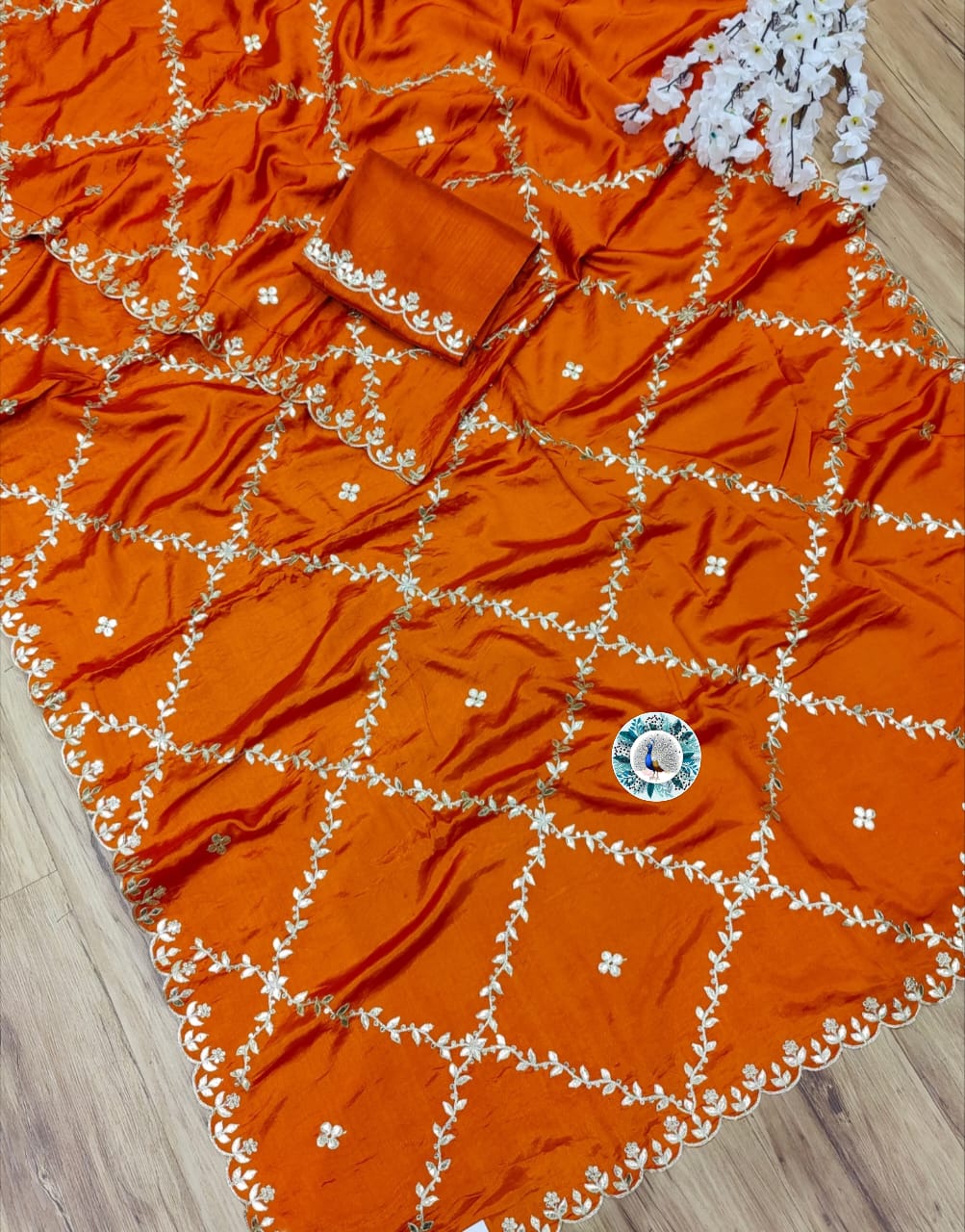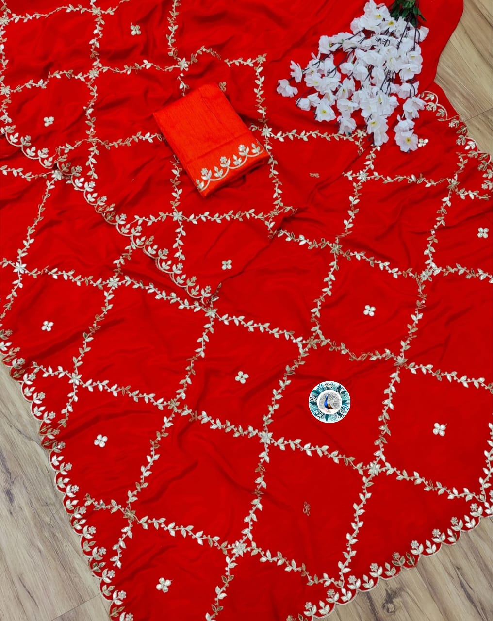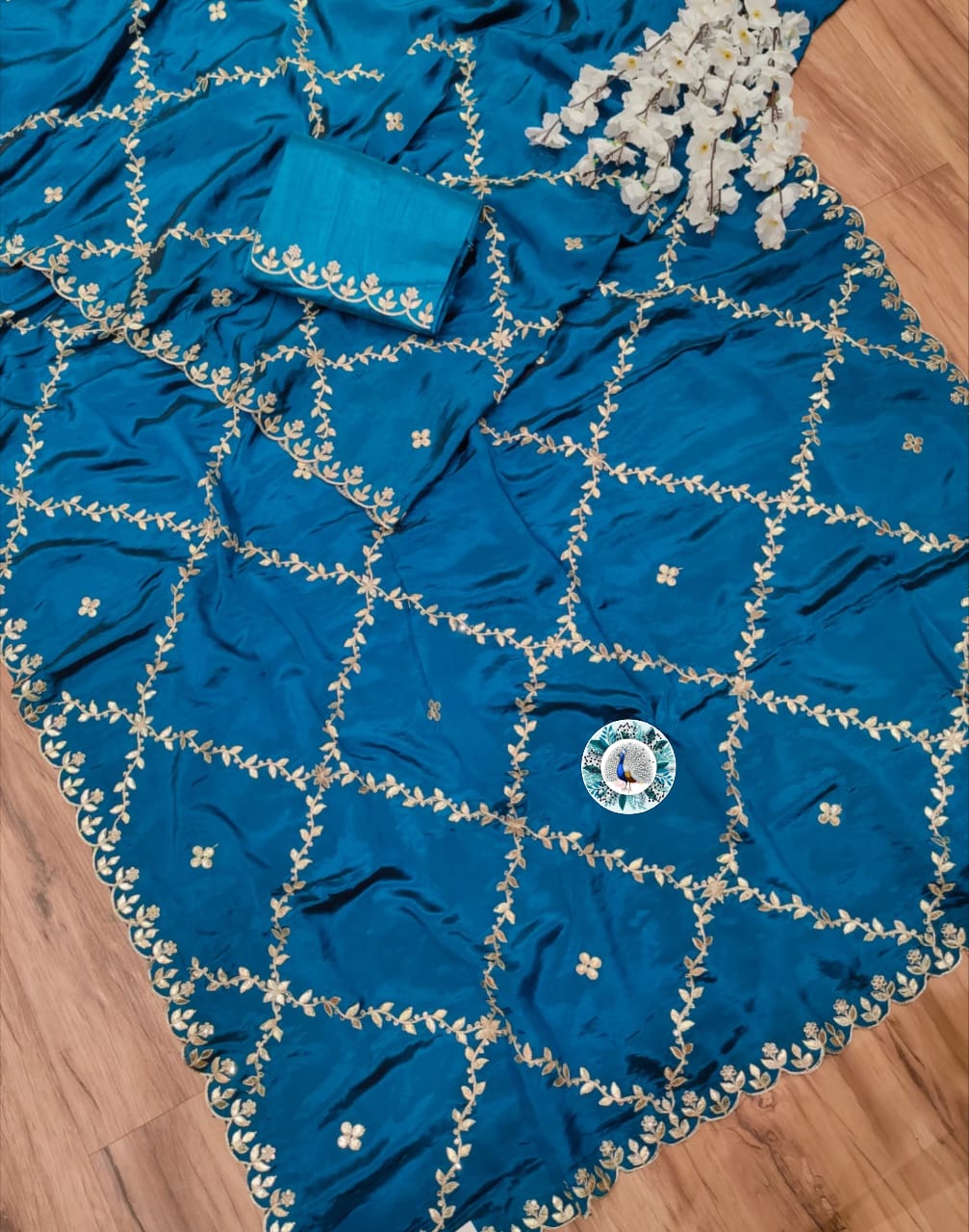 💓Beautiful Natural party saree pita jall work cut work bordar in all saree.