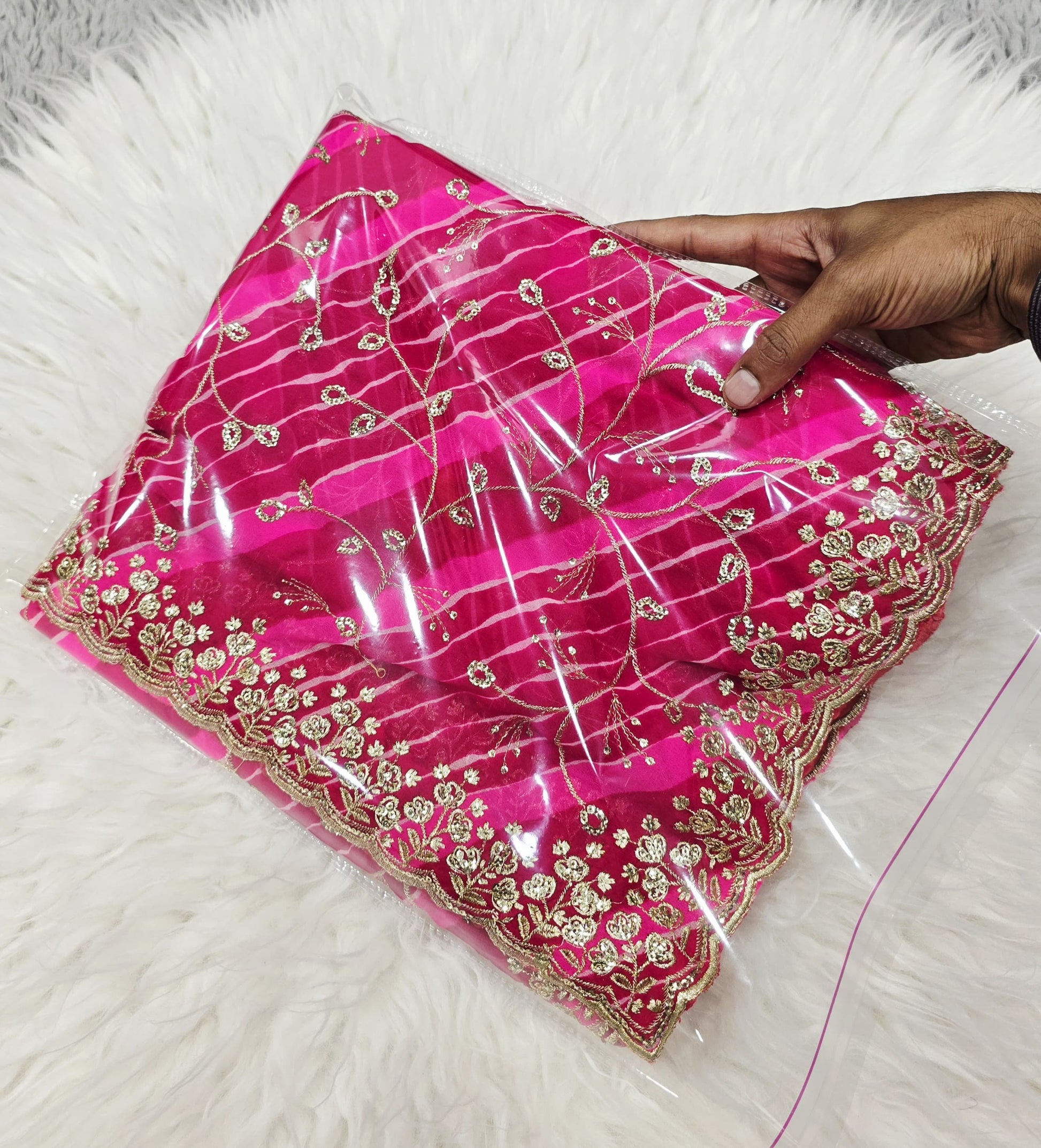 *PURE Georget C/C FABRIC WITH BEAUTIFUL SEQUENCE FULL JAAL WORK WITH CUT IN SAREE WITH WORK BLOUSE*