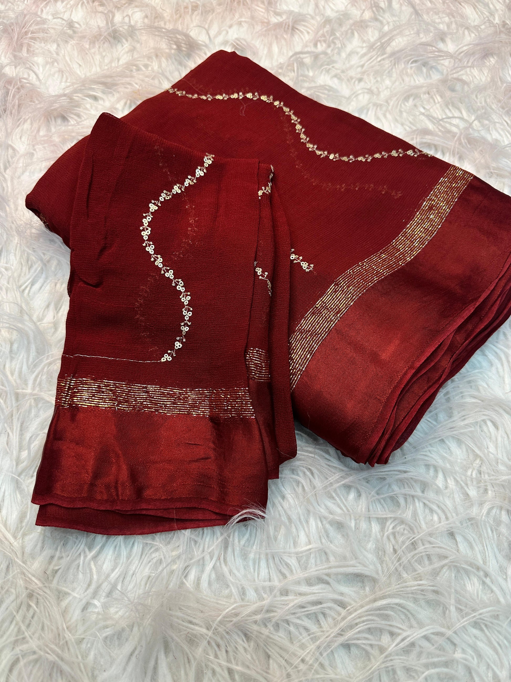 Fabric :- Soft Crunchy Silk Fabric Saree With Fancy Sequins & Thread ๐งต Embroidery Work & Fancy Embroidery Work Blouse ๐