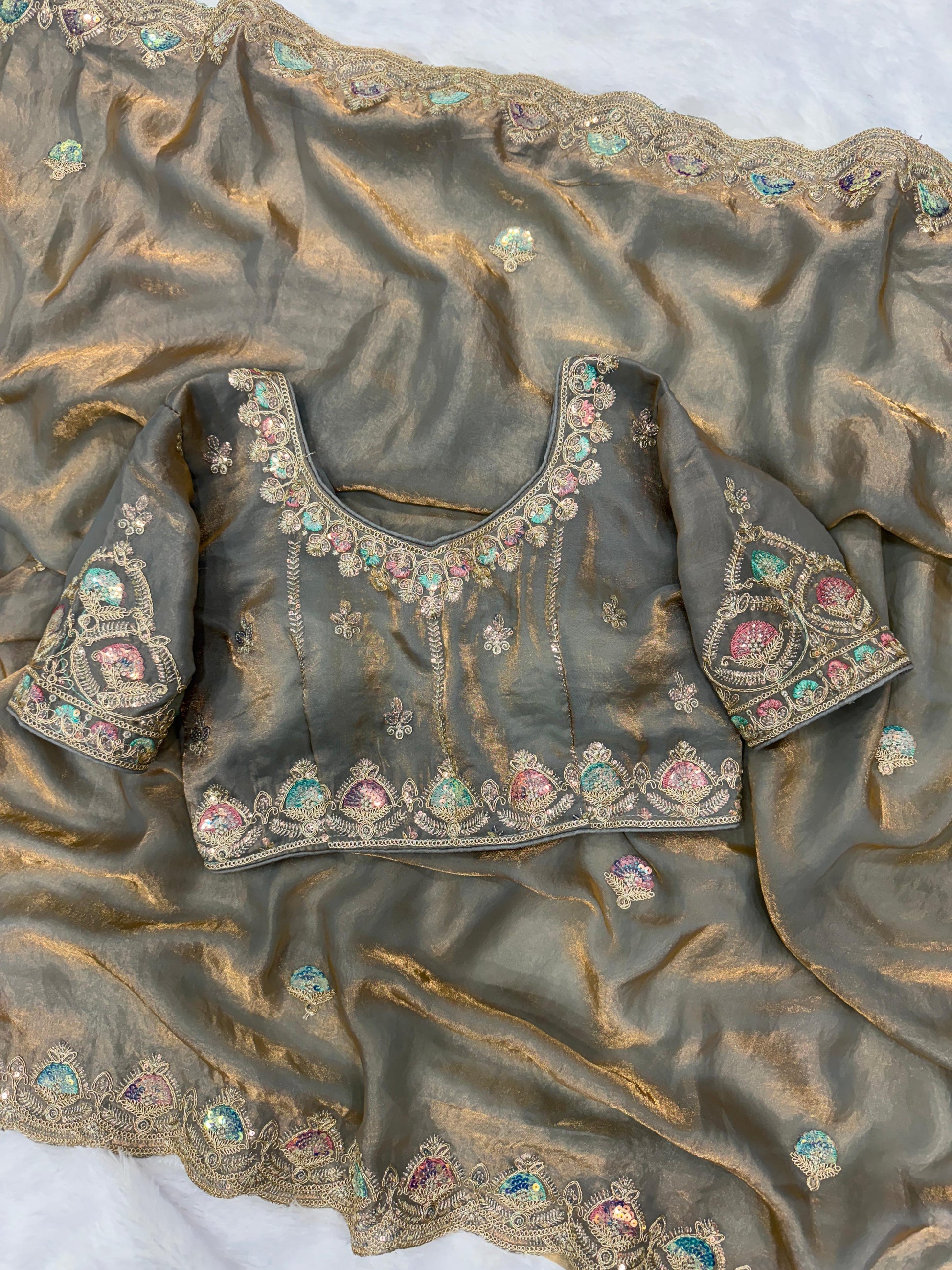 *⭕ BLOUSE*- Sequins cording work in space silk Fabric (UNSTITCH BLOUSE)