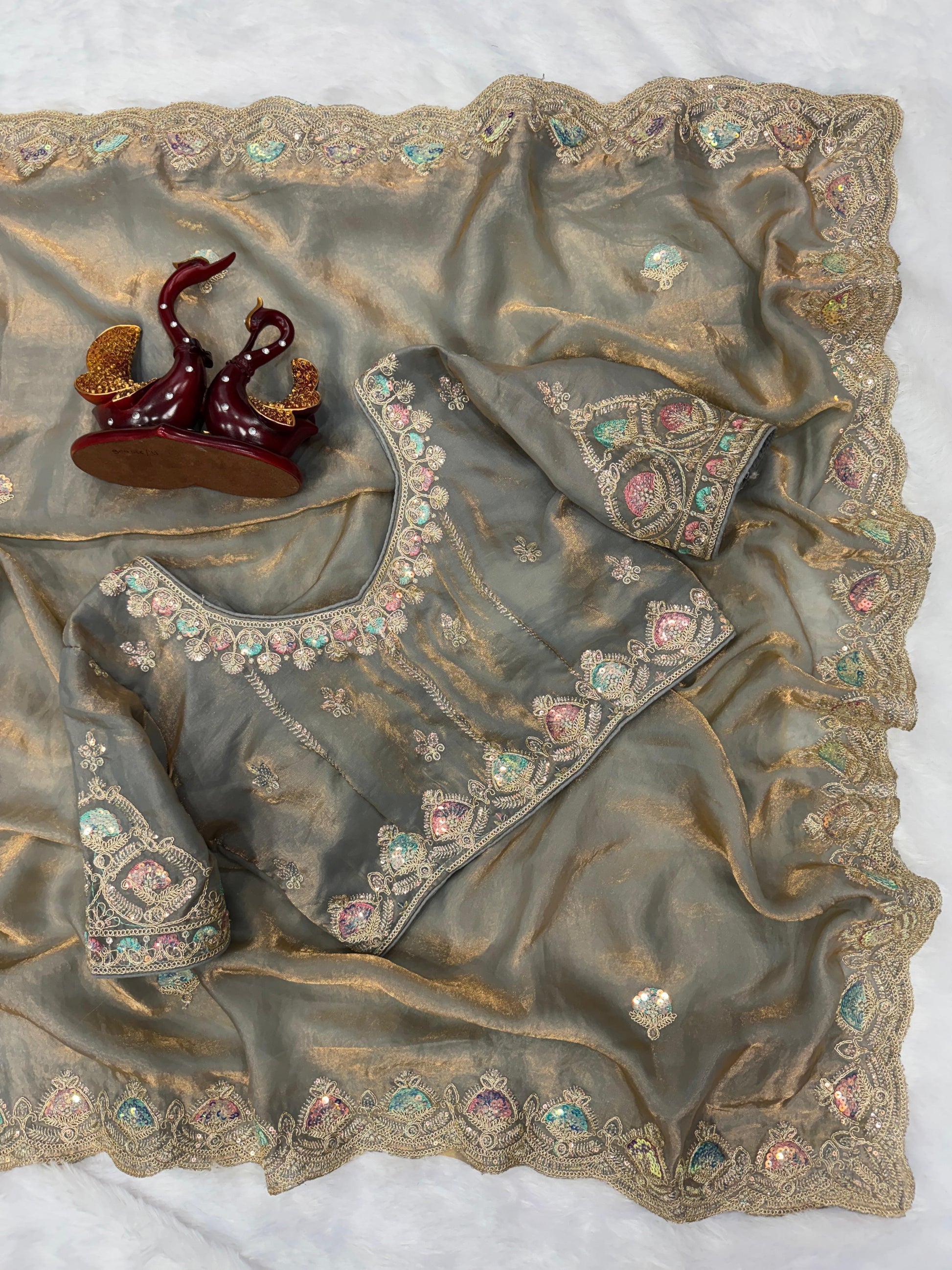 *Exuding grace and sophistication, this Sequins work embroidered saree blends classic beauty with modern elegance. Each delicate petal in the design tells a story of timeless charm, making it the perfect choice for those who appreciate both tradition and contemporary style.*
