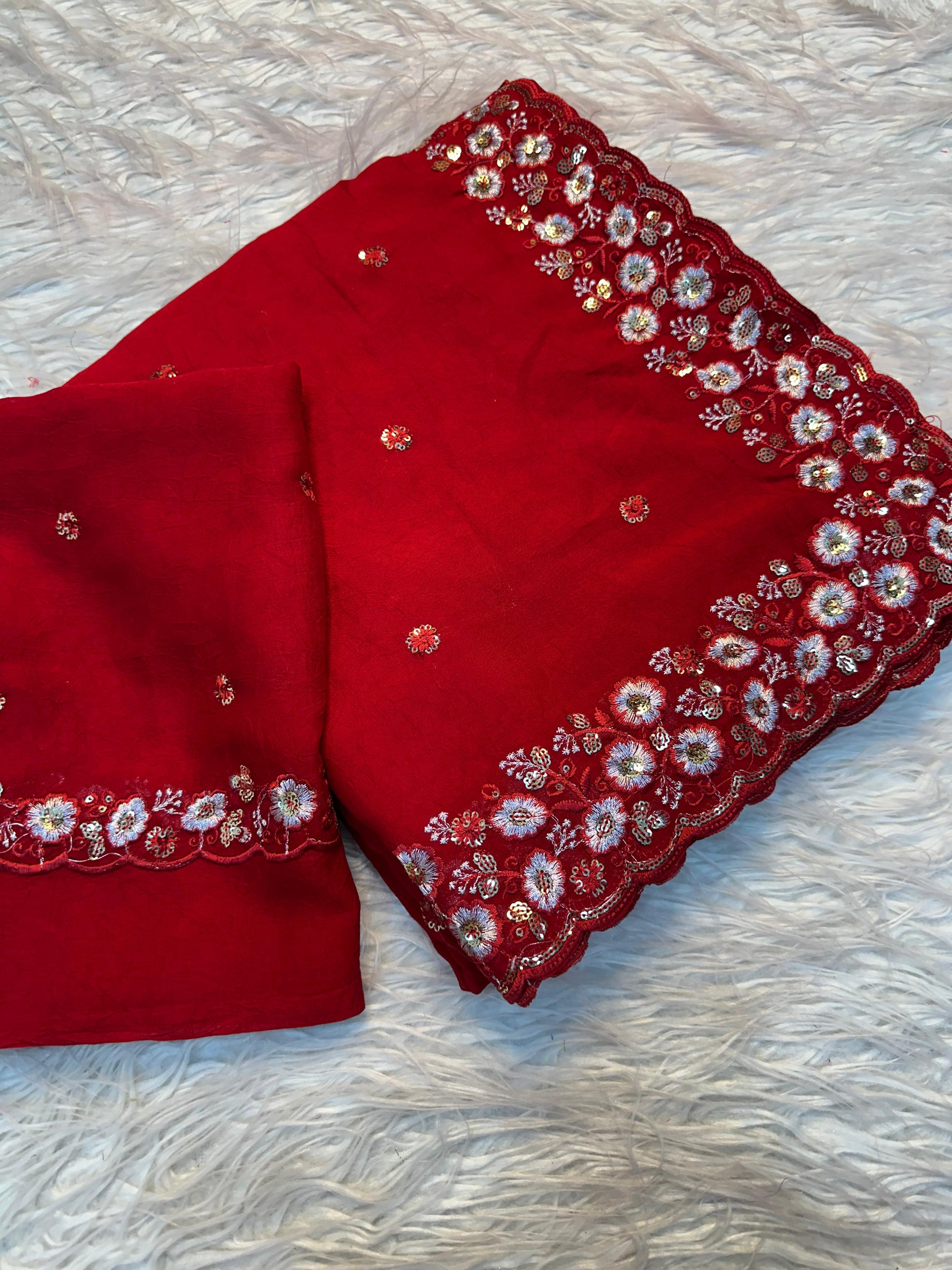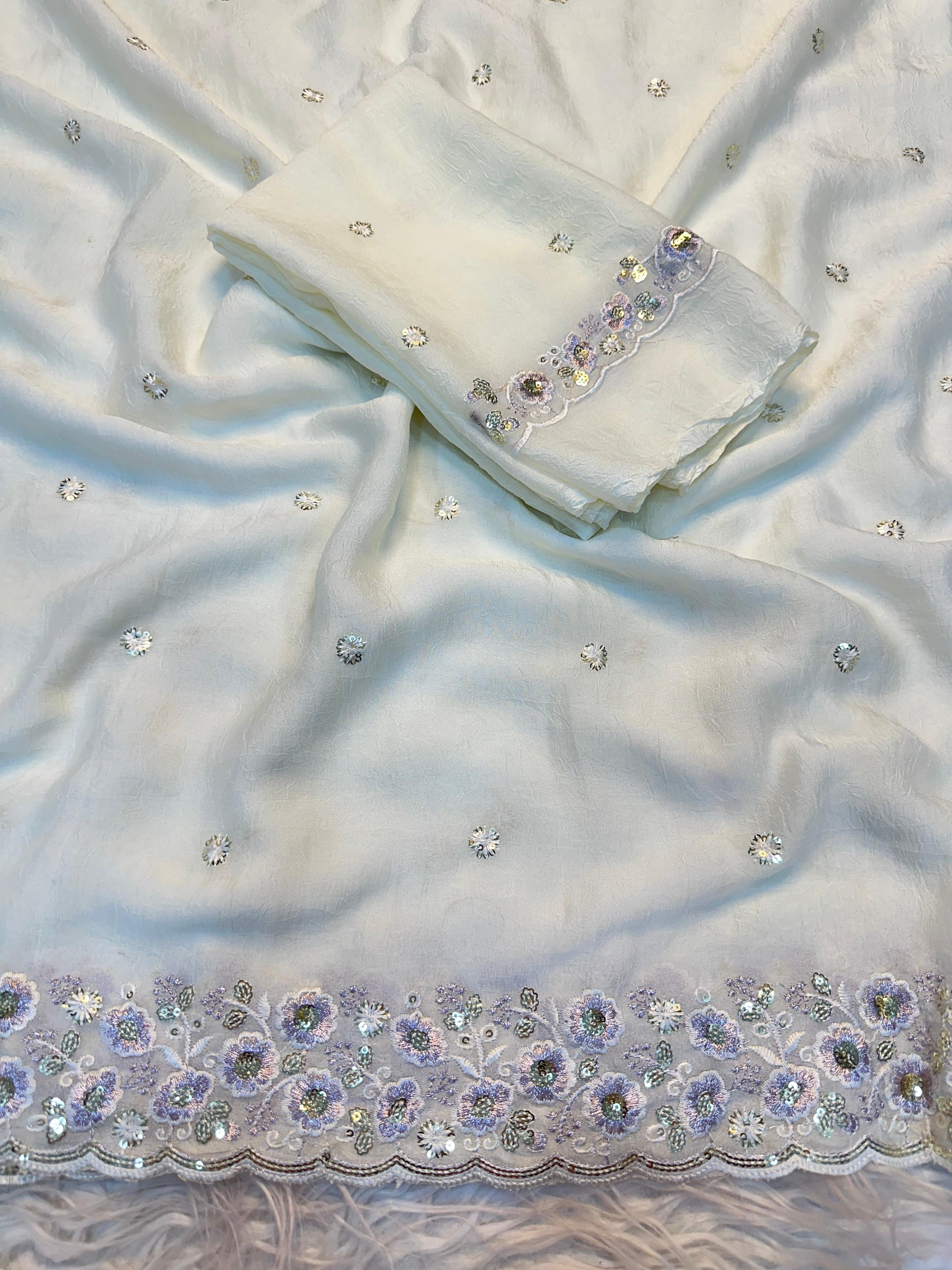 Fabric :- Soft Crush Silk Fabric Saree With Fancy Sequence & Thread ๐งต Embroidery Work All Over Sequence Butta & Pallu With Fancy Embroidery Work Blouse ๐