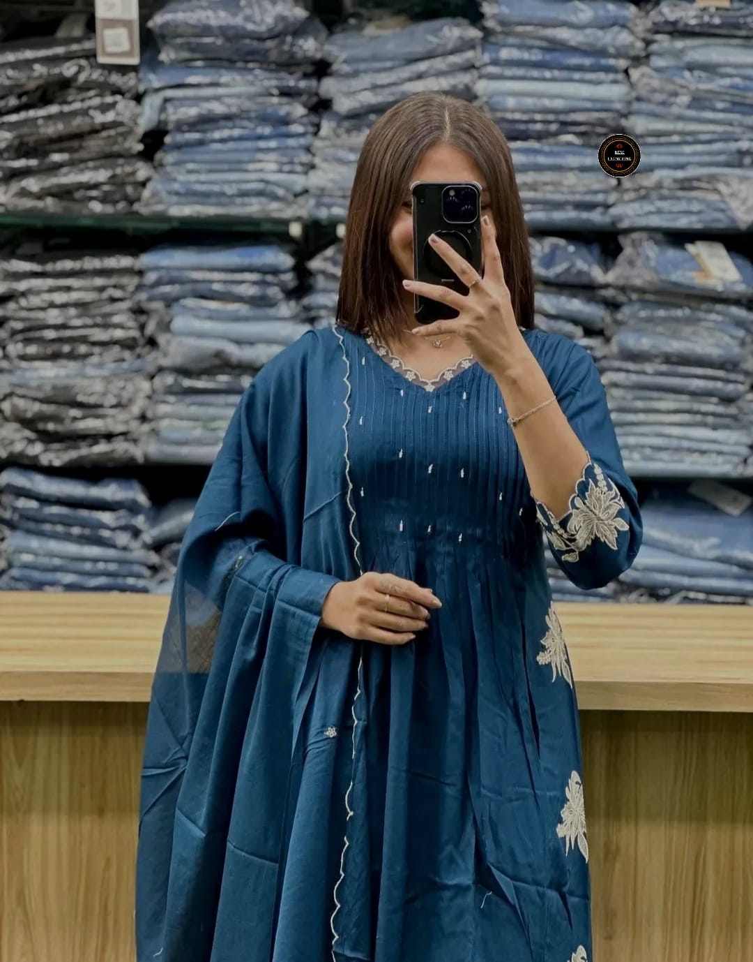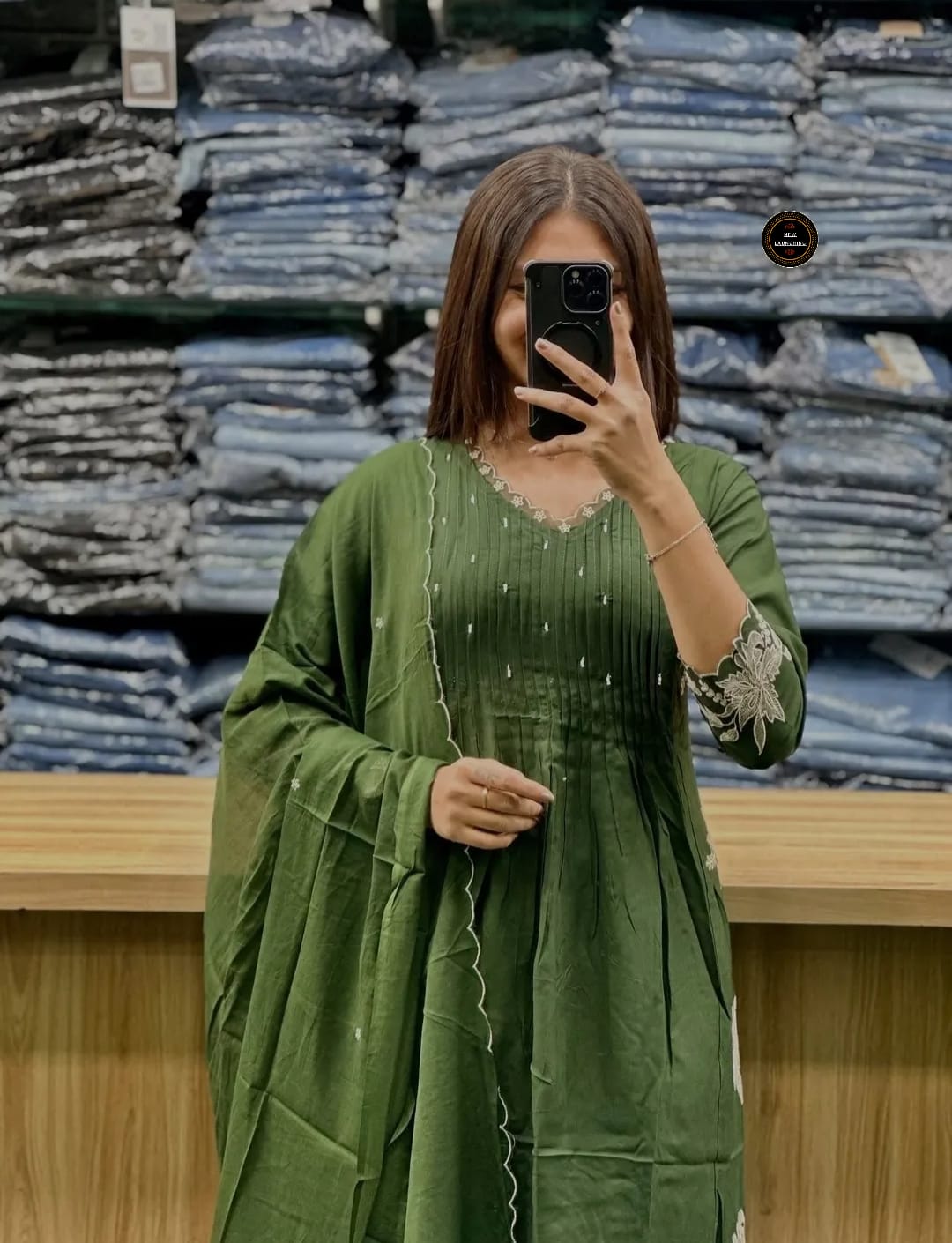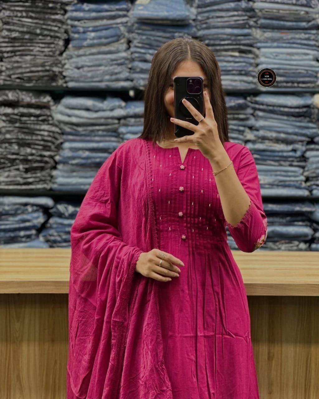 *๐New Anarkali kurta set with Cotton Pant & Malmal Dupatta with tier pattern.๐*
