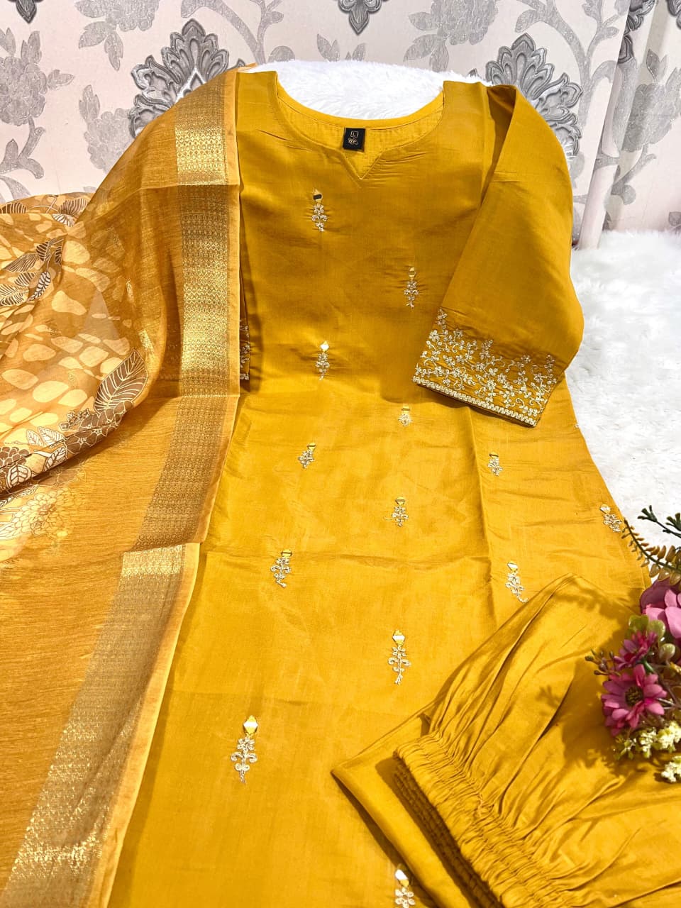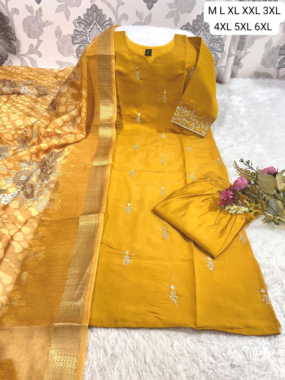 PREMIUM ROMAN SILK Fabric Kurti With Pant With Beautiful Digital PrinT Dupatta