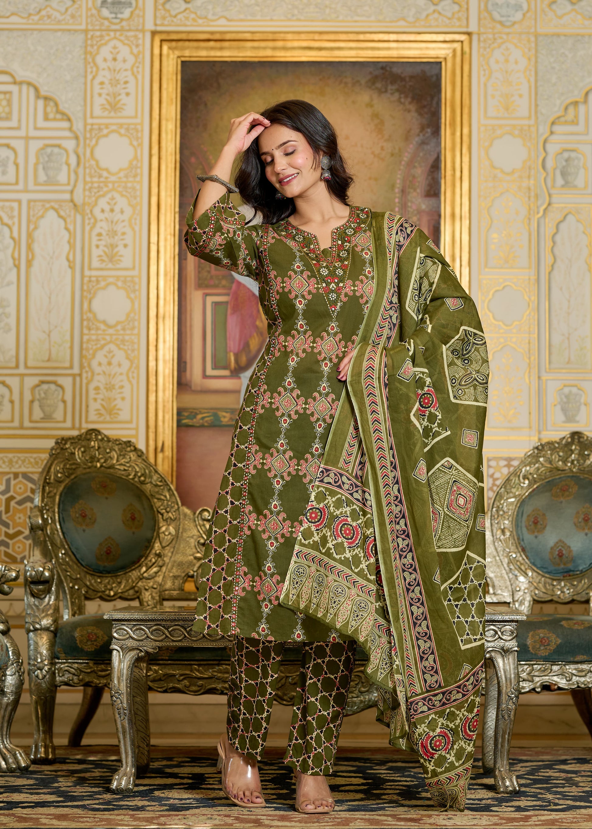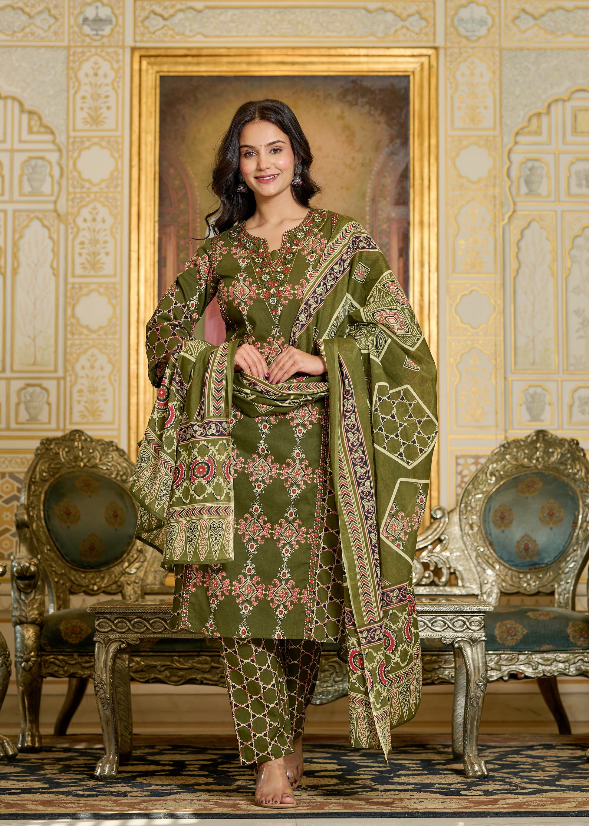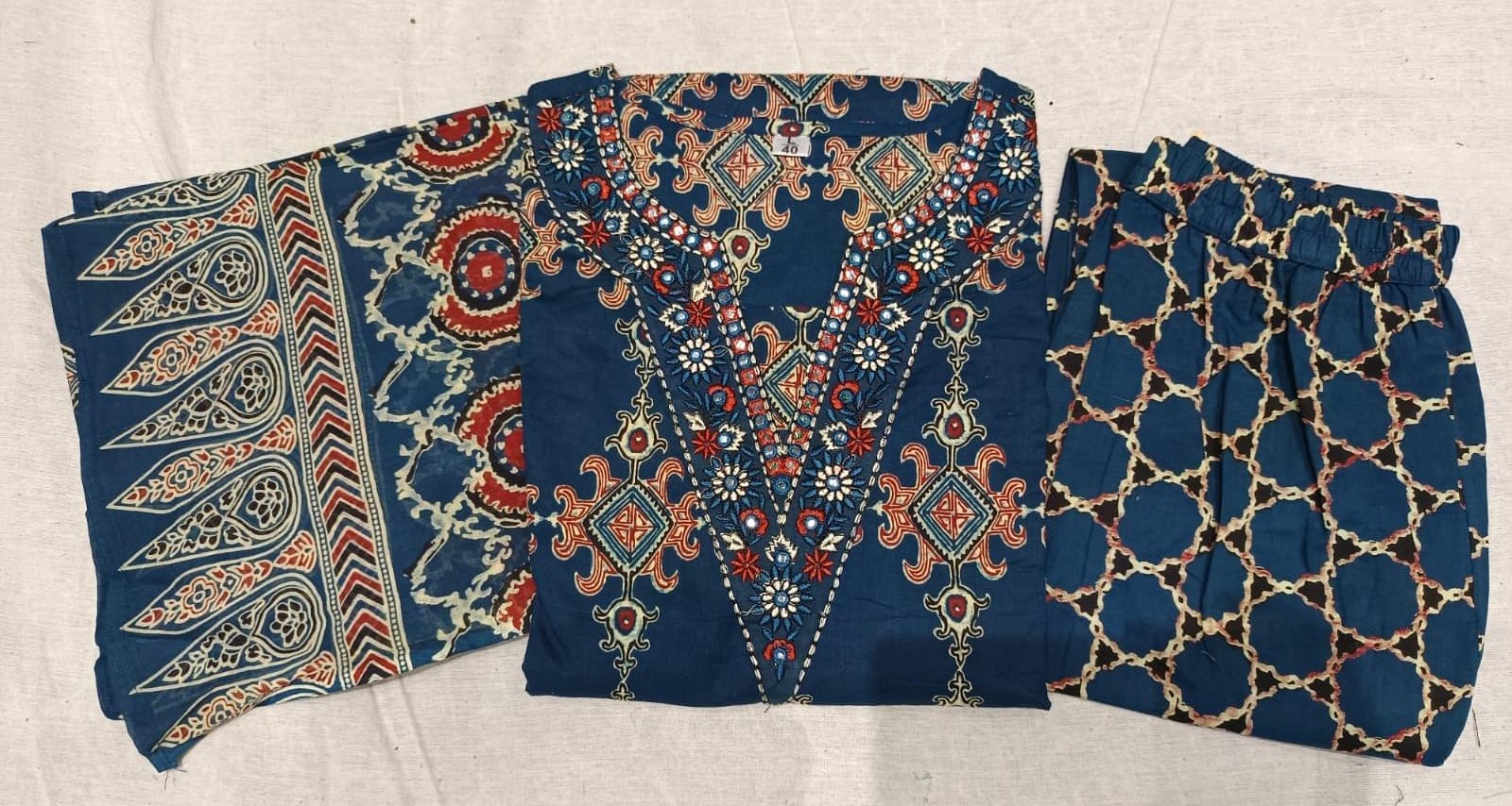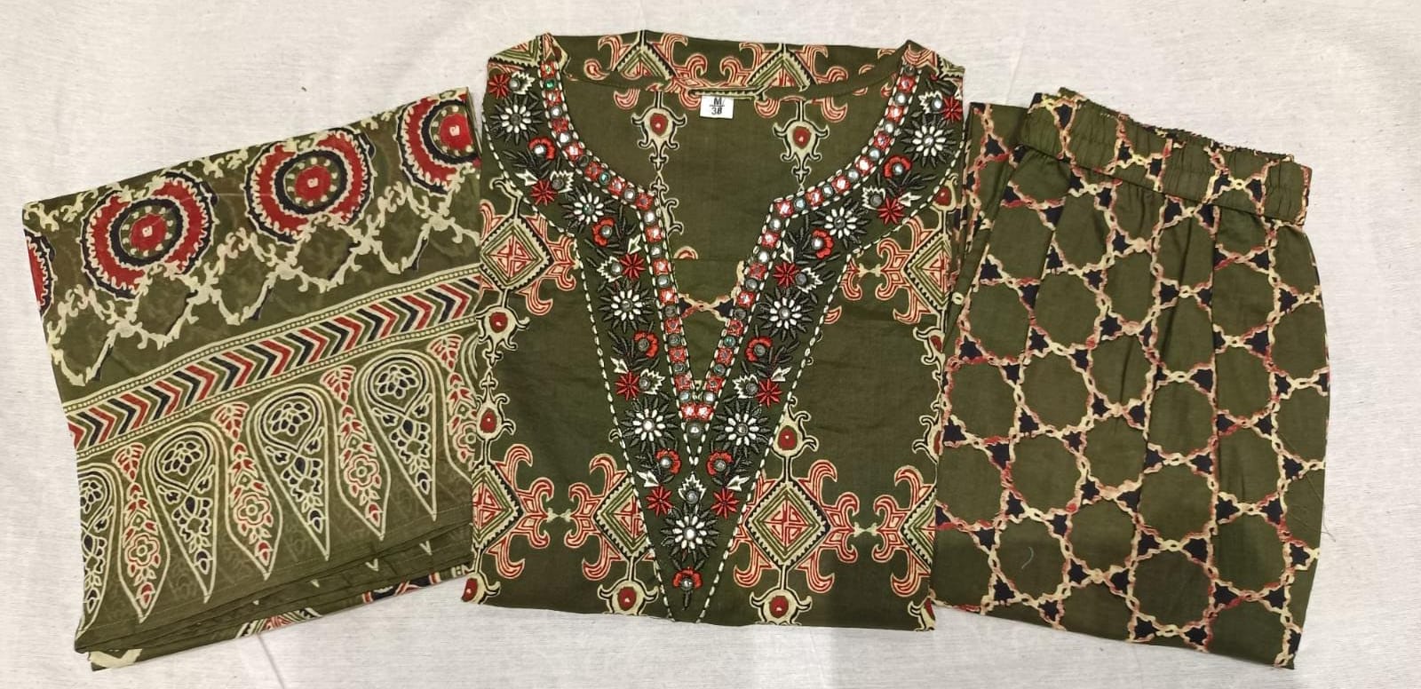 *Premium Quality Cotton Cambric Beautiful Printed Straight kurti with FULL EMBROIDERY WORK AND 🪞 🪞 WORK ...with Cotton printed pant and Full size Cotton Printed Dupatta...*