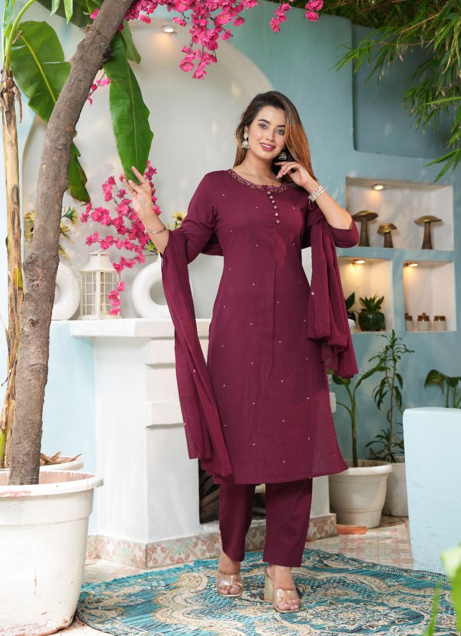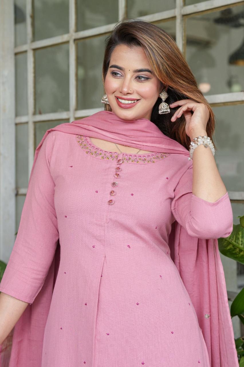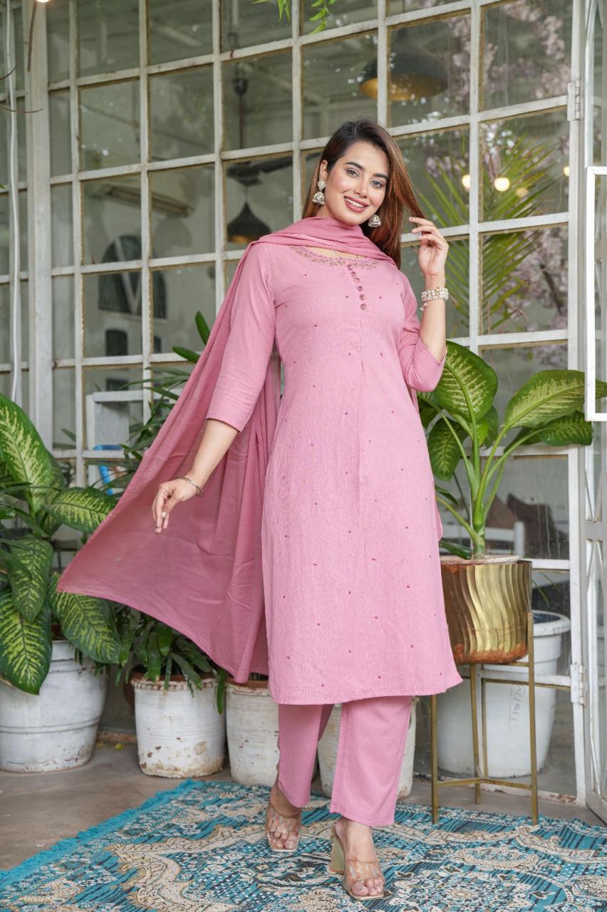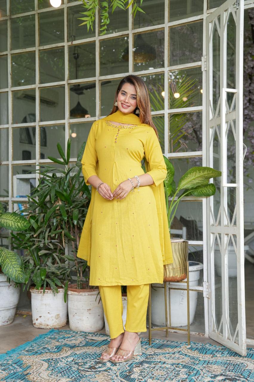 *Premium Heavy Quality Cotton Flex Straight Kurti. With Beautiful Neck Embroidery and Full Hand work on kurti Stylish Button with Embroidery and Cotton Flex pant and Full size cotton Dupatta with Mirror work..*