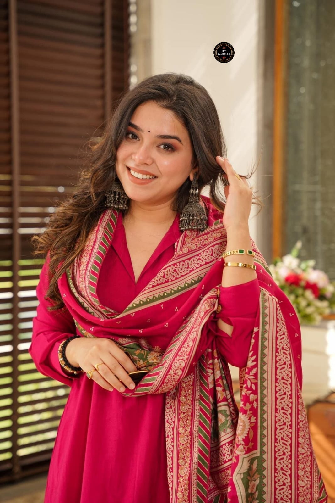 *🍁🍁🍁Featuring beautiful Heavy Suit Set which is beautifully decorated with Beautiful embroidery Work . It is paired with matching pants and Dupatta.*