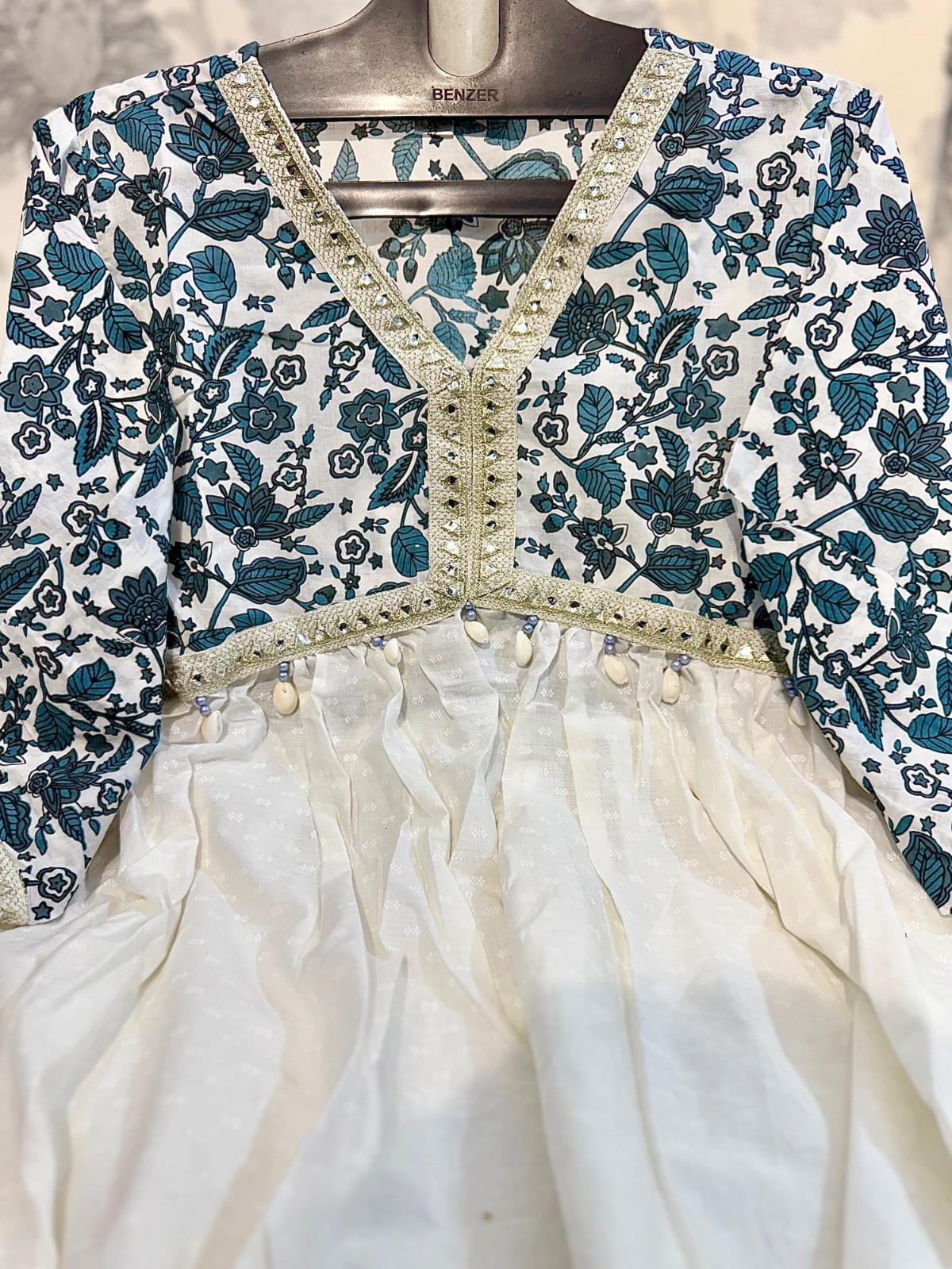 Cotton Printed Beautiful Embroidery And Cori Work On Neck In Kurti