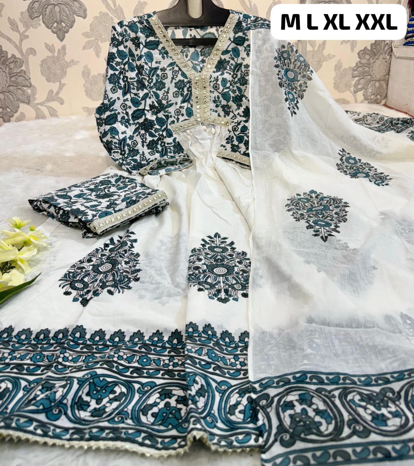 Stylish Alia Cotton Flair kurti with pant and malmal dupatta which gives you a cool n stylish look*