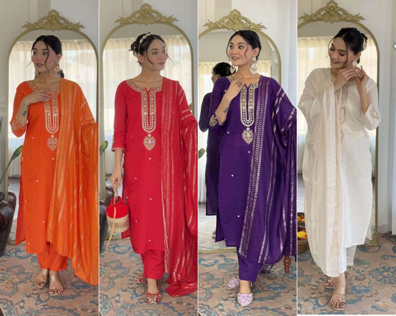 *🌺🌺Featuring beautiful Heavy Suit Set which is beautifully decorated with intricate hand embroidery, Zari weaving . It is paired with matching pants and Lace Dupatta.*