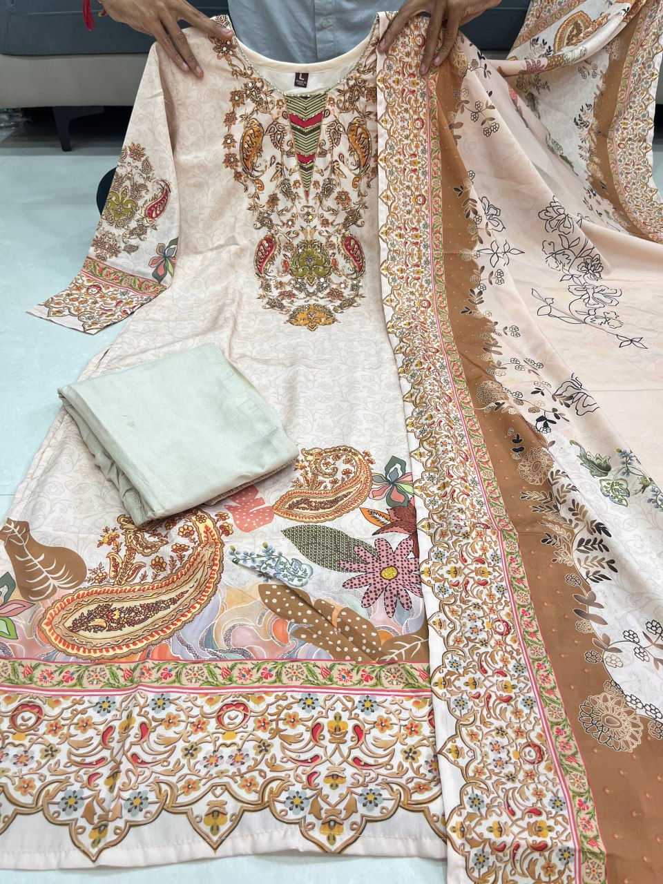 *Elevate your ethnic wardrobe with this Pure Russian Crepe Kurti Pant Dupatta Set. Designed with elegance and comfort in mind, this 3-piece ensemble showcases intricate embroidery and delicate prints, making it perfect for festive occasions and special gatherings.*