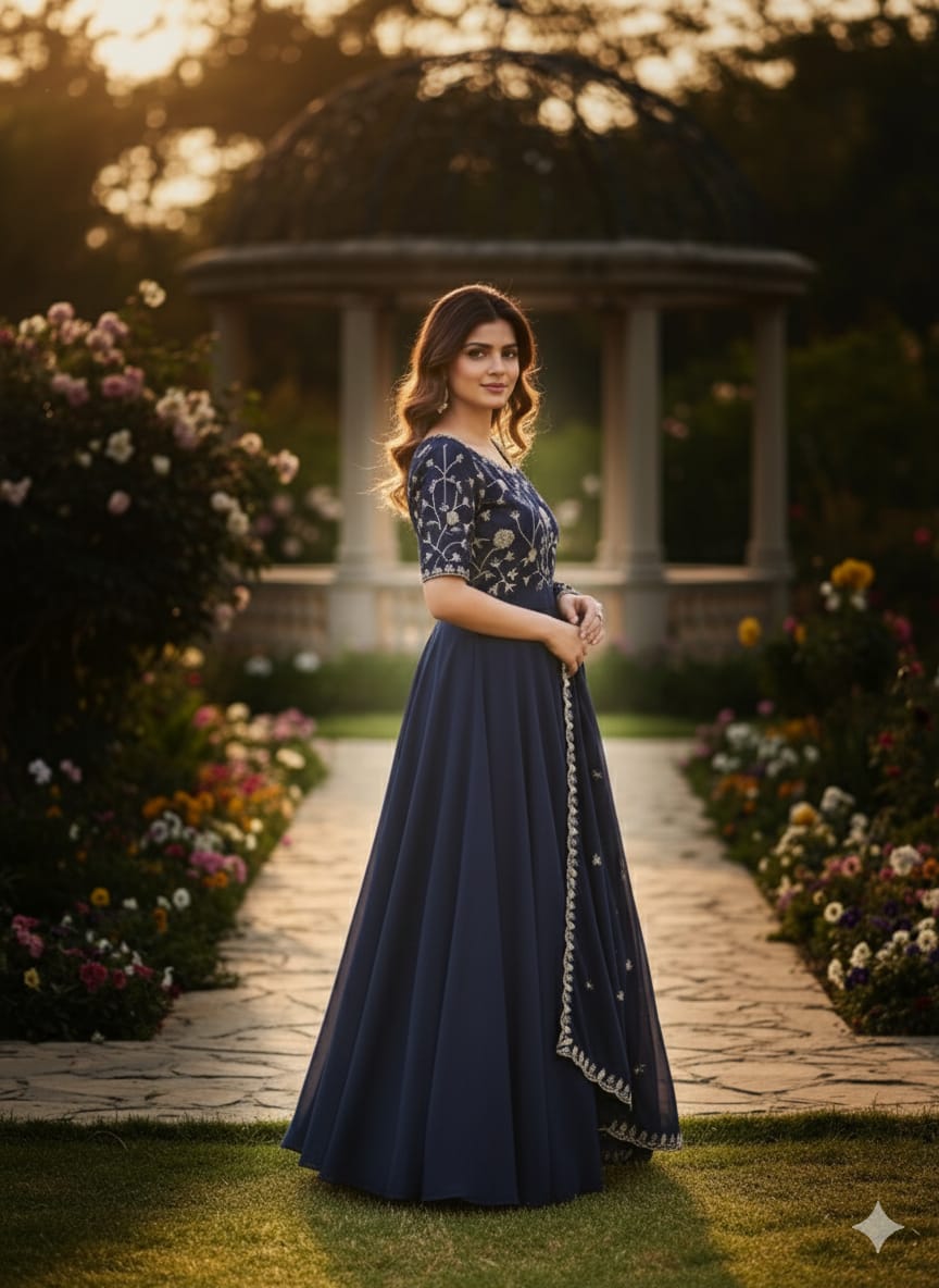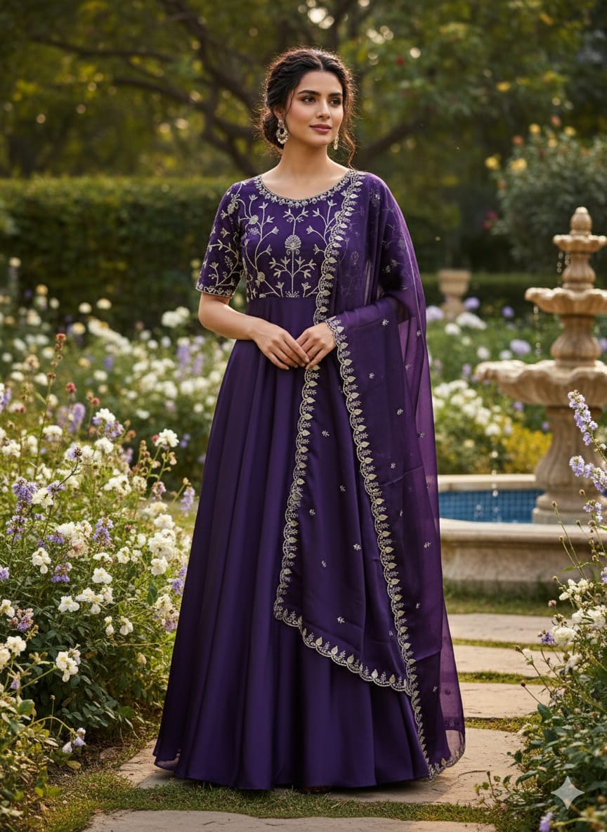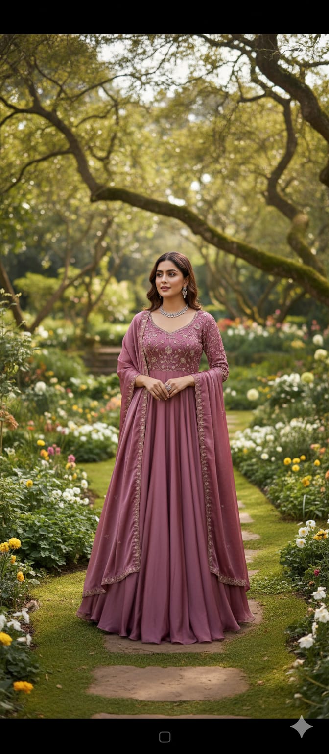 Elevate your wardrobe with our exquisite Vichitra Anarkali Dupatta adorned with beautiful embroidery All Over the Gown exudes elegance and sophistication. Crafted with utmost precision and attention to detail, this ensemble blends traditional charm with contemporary allure.